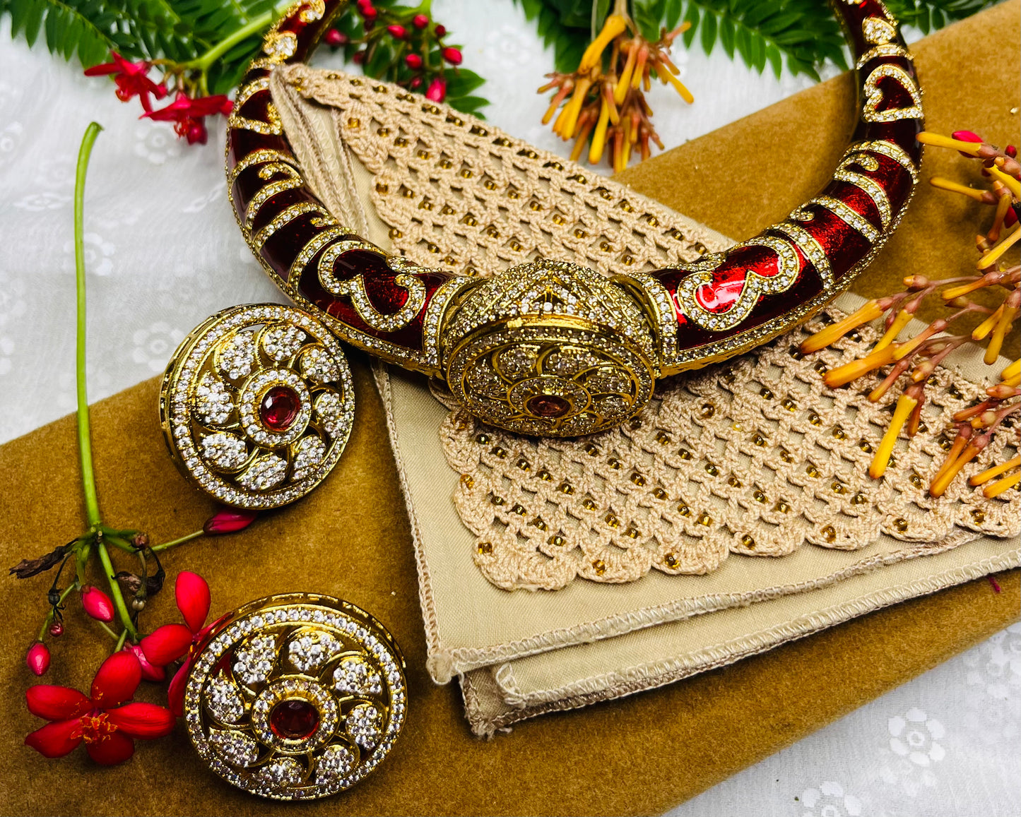 Make a statement with this Designer Choker Set, featuring bold meenakari work that brings vibrant color and intricate detail to your look. The striking necklace centerpiece and matching earrings add flair to ethnic sarees or complete a lively Punjabi ensemble. Perfect for those who love to stand out with playful elegance!