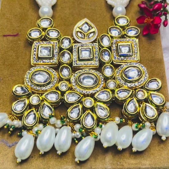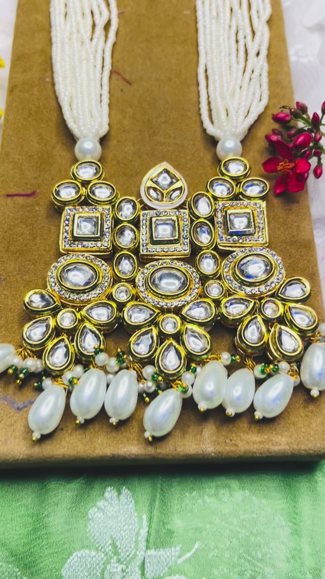 Add a touch of royal elegance to your jewelry collection with this stunning Kundan necklace, paired with delicate matching earrings. This piece is meticulously handcrafted with premium-quality Kundan stones, white motifs, white pearls, showcasing the artistry and heritage of traditional Indian jewelry. The design strikes the perfect balance between simplicity and sophistication, making it a versatile choice for any occasion.