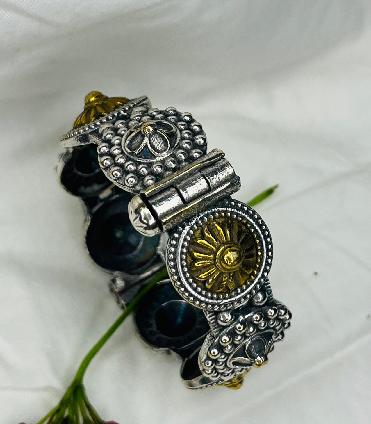 Embrace the charm of traditional elegance with our Silver Replica Oxidised Kada. Handcrafted to perfection, this ethnic masterpiece is designed to make a statement with its intricate detailing and timeless appeal.