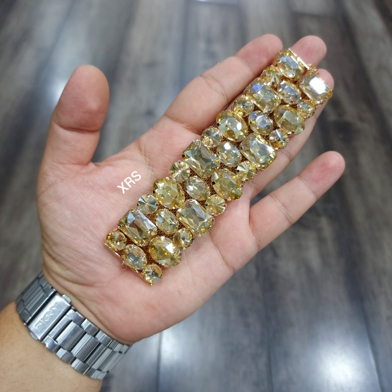 Sparkle with the Saira Bracelet! Featuring oversized clear crystals set on a golden sculptural frame, this playful piece makes the stones appear to float, celebrating the magic and geometry of crystals in a fun, modern way. Perfect for adding a dazzling touch to any look!