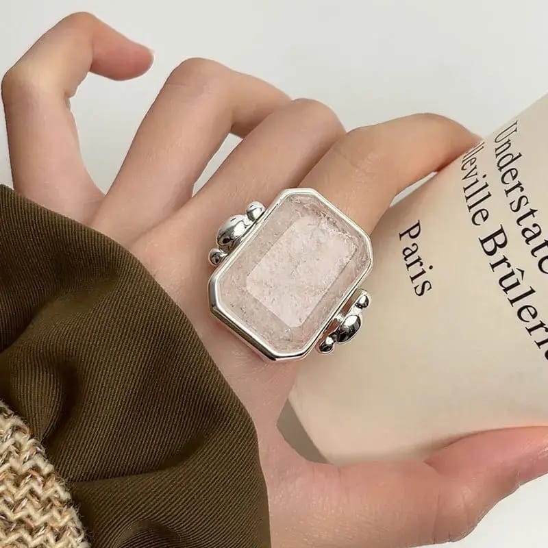 Ready to rock some serious sparkle? The Clarity Prism Ring is your new finger's best friend! This beauty sports a jaw-dropping rectangular natural stone crystal that winks and twinkles with every flick of your wrist. Part vintage treasure, part modern marvel, it's like wearing your very own disco ball that screams "Look at me!" without saying a word. Prepare for compliments – they're definitely coming your way!