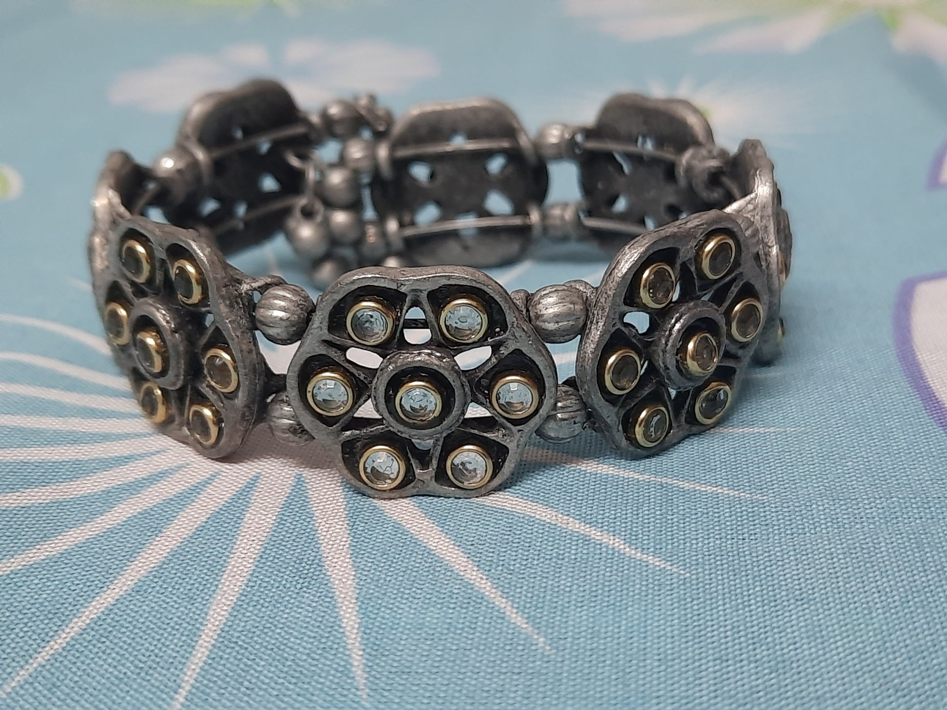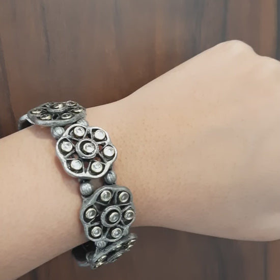 Silver Toned German Silver Oxidized Bangle-Style Bracelet.