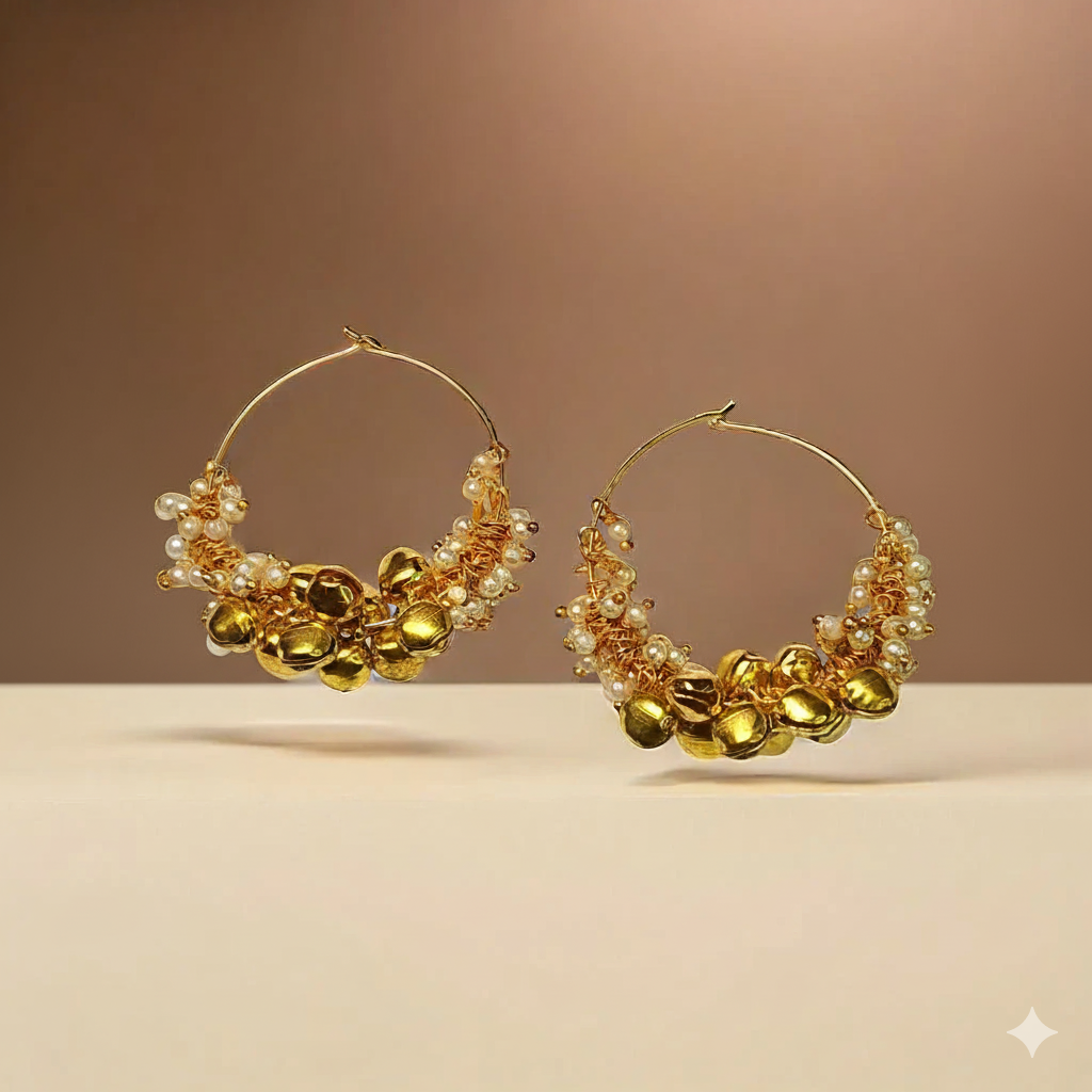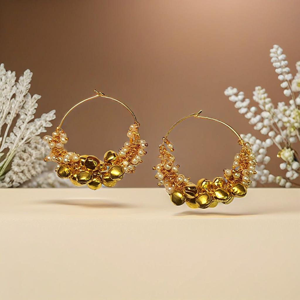 Hoop Style Brass Golden Bali with ghunghroo for a minimal but elegant finish. Show elegance at it's finest with these hoops. Pair it with any outfit, suitable for outdoor wear.