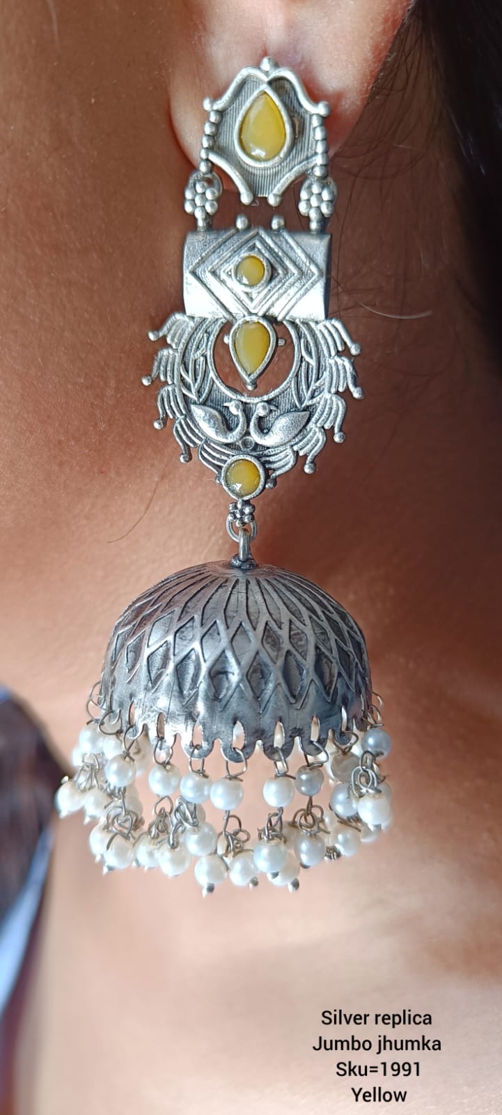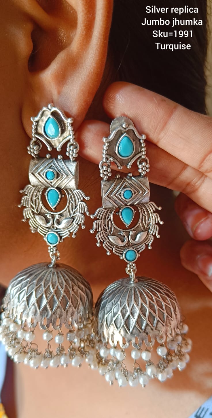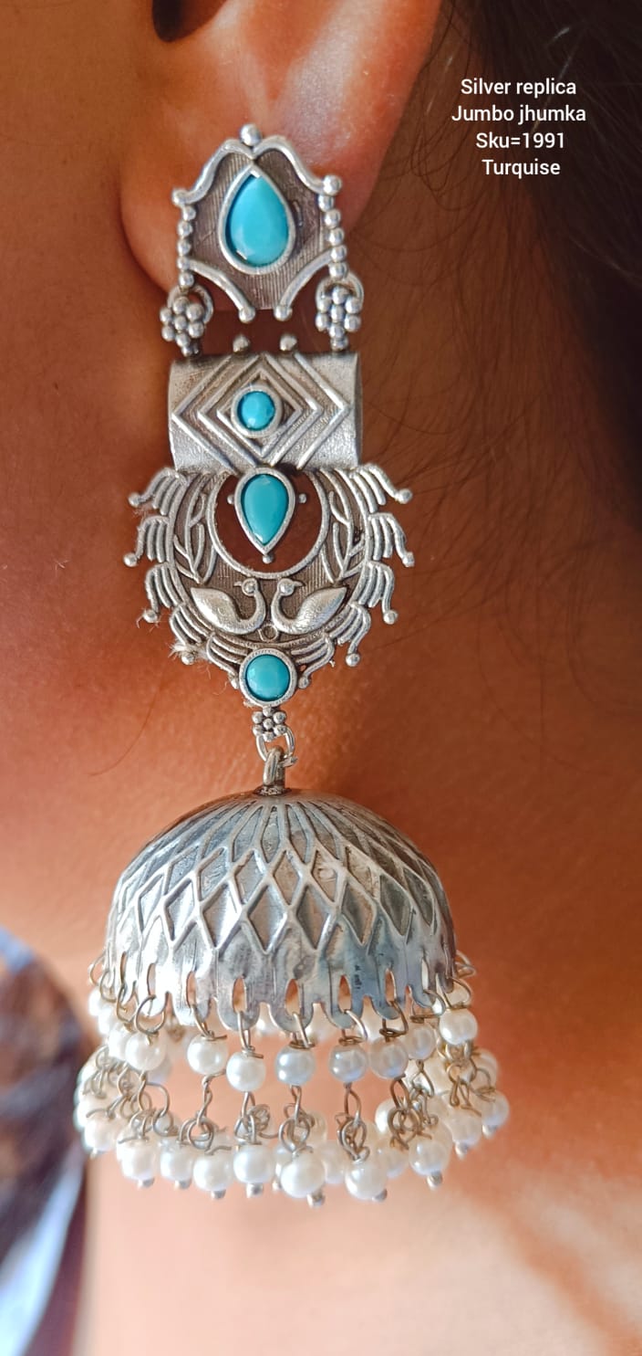 Take your style to the next level with our Silver Replica Jhumkas! Made with premium quality silver and available in multiple colors, they are perfect for both casual and festive occasions. Trendy and versatile, they can elevate any outfit and are suitable for women of all ages. Dare to be bold and make a statement with our Silver Replica jhumkas!